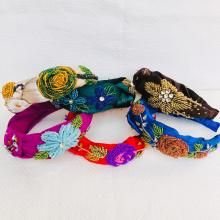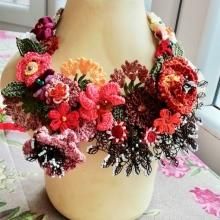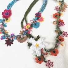 oya刺繍 華やかなお花の刺繍にグリーンの石が縁どり チョーカー32