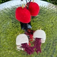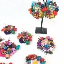 トルコの伝統手工芸品 マーガレットに赤いお花たちと果実たち 赤い実がサクランボのように揺れて oya刺繍ピアス 1049*
