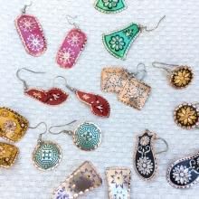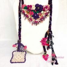 トルコの伝統手工芸品 パープルとピンクのお花にイエローが差し色に 「呼吸し、考え、楽しみ、愛しなさい」 1点もの oya刺繍ピアス 1077*