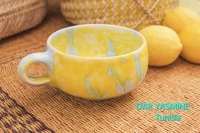 Hanenカラフル地中海陶器 陽気なイエロー&アクアブルー サラダボウルにどうぞ チーリンChiLin CLJT