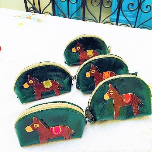 かわいいロバのモチーフです。 すべて職人による一点もので、ロバの表情や鞍の色は違いがございます。 ※革製品なので、長時間日光に当たり続けたり使用していくうちに経年変化といいより色目が濃く深みのある色へと変化します。