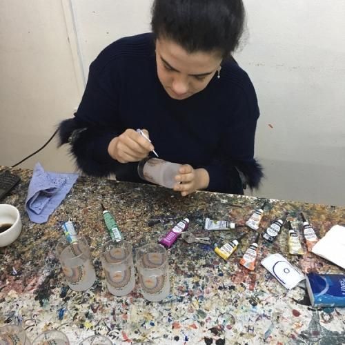 お茶(チャイ)を飲むグラスに絵付けをする工芸があります。