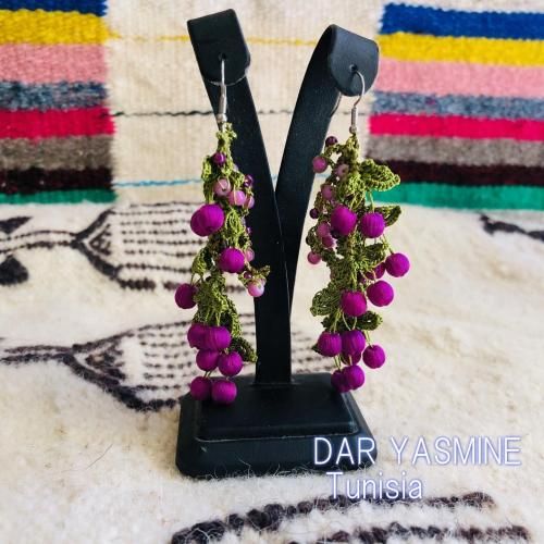 トルコ伝統工芸 oya刺繍 「癒しの色パープルは愛にあふれたジェレミエル」 ロングピアス1026