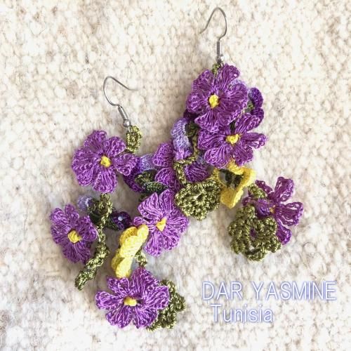 トルコ伝統工芸 oya刺繍 「ルピナス いつも幸せ」 ロングピアス1030-7