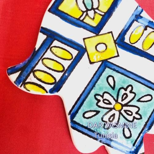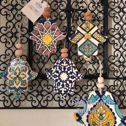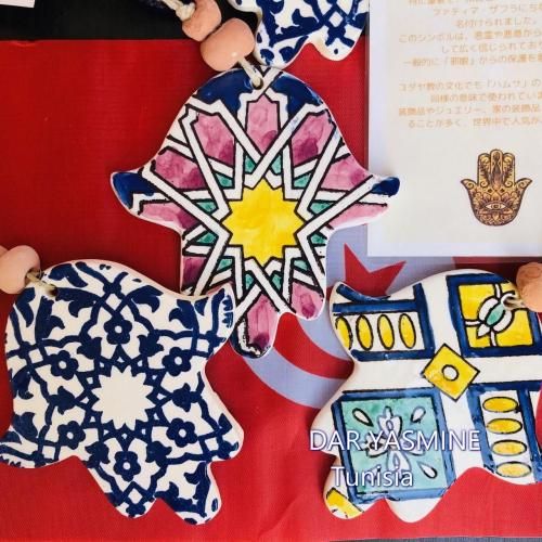 ※全てチュニジアの職人による手作りの為、まったく同じものはございません。 モチーフの上についている玉が画像のものと違う場合がございます。ご了承ください。 材質は陶器になりますので、汚れがついても拭き取るだけできれいに。