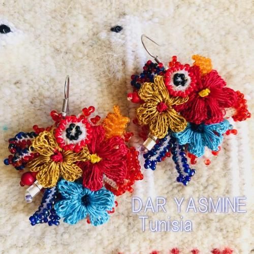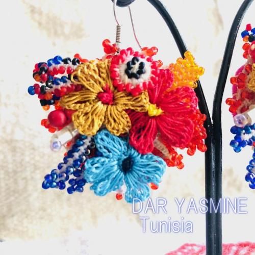トルコの伝統手工芸品 お花にリボンをかけて〜光の世界へ oya刺繍 ピアス 1136*