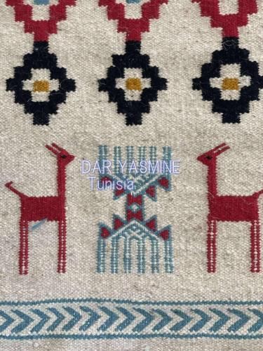 *キリム全体に丁寧に織り込まれている櫛は、キリムを織るときに必要な櫛でベルベル/アマジグの世界をあらわします。結合、安定、安全の意味があります。