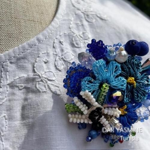 トルコ伝統工芸 oya刺繍 ブローチ 「静かでクリアな氷の世界へ」 ブローチ46