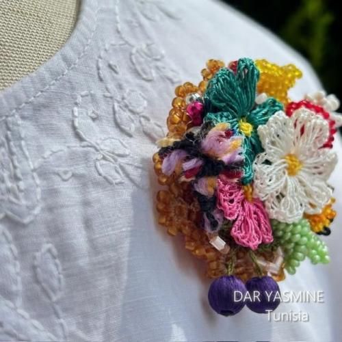 トルコ伝統工芸 oya刺繍 ブローチ 「ひとつの詩の始まり」 ブローチ48