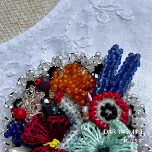 はるか昔に使われていたその技法が、イスラムの文化圏でスカーフの縁どりに 装飾されおしゃれを楽しむようになったようです。