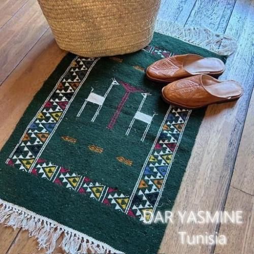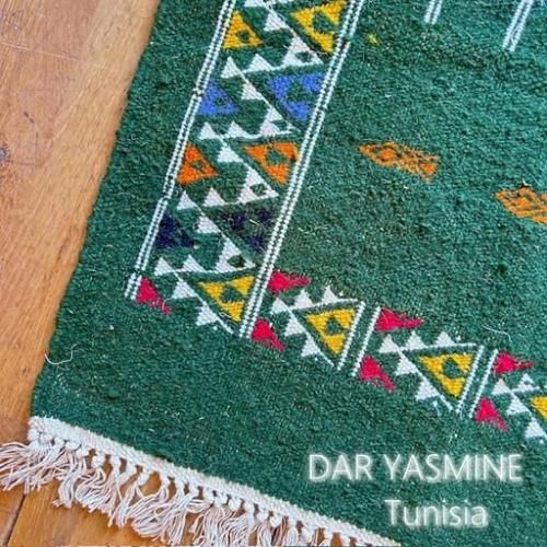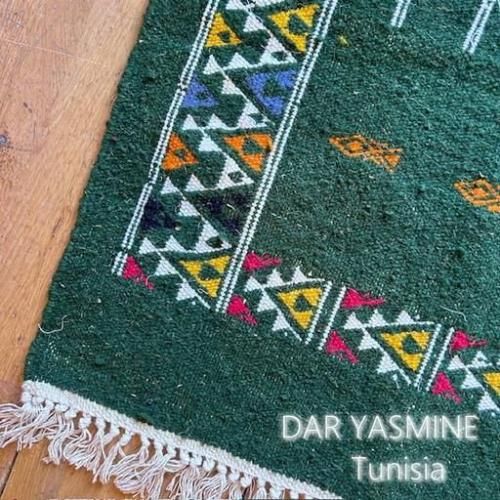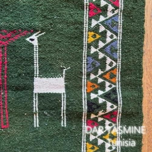 チュニジアの内陸部 ガフサ県スネッド村の平織りのカーペット、キリムです。