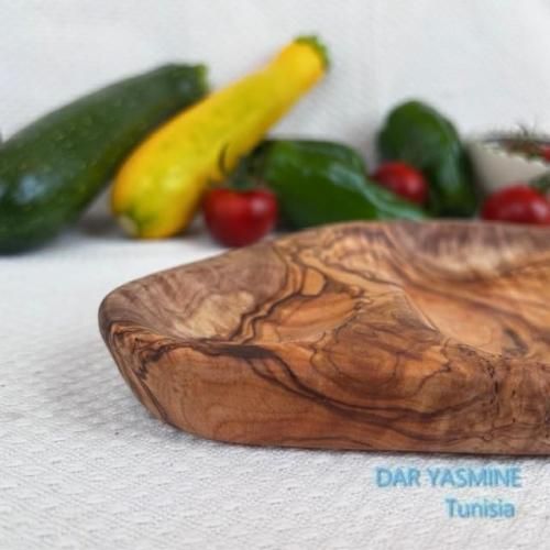 チュニジアならではの木目のすばらしい、樹齢300-800年の木が用いられます。オリーブの実を食し、オイルを生むため、生産性のある木は法律上許可がない限り伐採はできません。